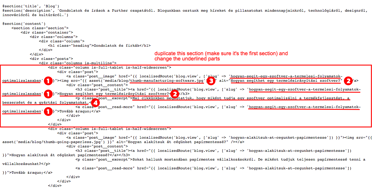 These subviews must be named as [slug].blade.php and located in /resources/views/[en or hu]/blog/posts/
